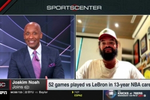 体育资讯2月11日讯 今日,前NBA球员诺阿做客ESPN电视节目《Sports Center》,谈到湖人前锋詹姆斯。