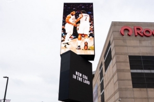 骑士官方晒出米切尔与哈登同框广告牌:今夜,克利夫兰将迎来崭新篇章。