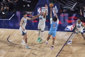 赛后,小罗恩·哈珀接受了记者采访。谈到迪伦·哈珀最后面对自己杀死比赛,他调侃道:“他真是软弱无力的家伙。不过说真的,那是一个不错的动作。但如果一个人持球18秒,他最好是得分。”