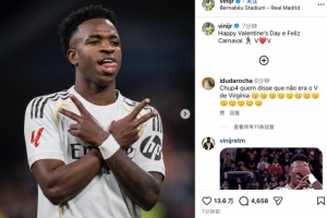 下一篇: 梅开二度+两造点,维尼修斯社媒:情人节快乐,尽情狂欢吧!