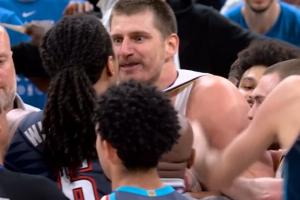 GIF-多特撞翻了约基奇~!随后双方爆发冲突~!!!