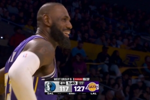 GIF-东契奇助攻詹姆斯三分命中
