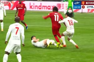 比赛第25分钟,严鼎皓铲球犯规,马宁出示黄牌,铁人半场已经有三人染黄,分别是热菲尼奥、费利佩、严鼎皓。