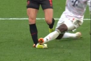 比赛第41分钟,杰克逊蹬踏对手脚踝,裁判场边回看后将其直红罚下,拜仁少打一人!