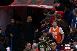比赛最后时刻,杜兰特一个不轻不重的推人被吹进攻犯规,乌度卡随后怒喷裁判被驱逐,赛中,阿门在跑动时打到塞克斯顿面部吃到恶犯;