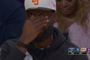 下一篇: 克莱伯上篮被篮筐帽了 詹姆斯在场边捂着脸笑不停🤣