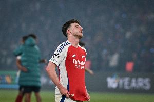 当被问及更多关于赖斯伤情的信息时,阿尔特塔表示:“他无法继续比赛,所以我们只能等待,看看明天情况如何。他能走路,但他没法比赛了。”