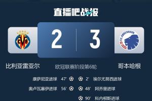 体育资讯12月11日讯 欧冠联赛阶段第6轮,比利亚雷亚尔主场2-3遭哥本哈根绝杀,欧冠一胜难求。