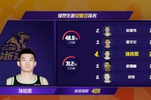 本场比赛,广厦球星孙铭徽得到5分3助攻。