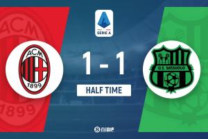 半场-AC米兰暂1-1萨索洛 奇克精彩助攻19岁巴特萨基扳平