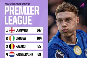 切尔西队史英超射手榜: