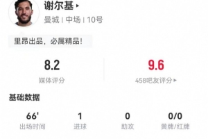 体育资讯12月18日讯 曼城在本轮联赛杯2-0力克布伦特福德,谢尔基本场数据如下: