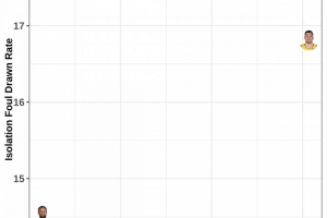 纵坐标:单打造犯规率。库里约14%,亚历山大约18%,东契奇约17%