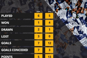 热刺本赛季英超主场、客场数据: