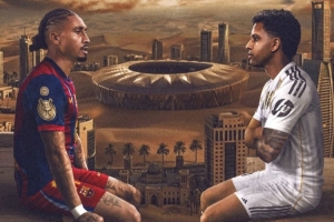 巴萨官方社媒发布了为此役制作的海报,内容为拉菲尼亚pk罗德里戈,背景则是吉达阿卜杜拉国王体育场。