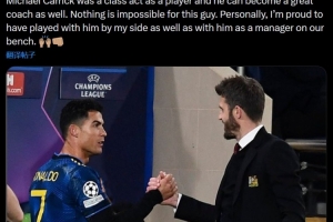 C罗在2021年曾经高度评价作为教练的卡里克,他写道:“卡里克在球员时代就是一位顶级球员,他同样可以成为一名伟大的教练。对于他来说,没有什么是不可能的。就个人而言,我曾与他并肩作战,也曾在他的麾下效力,这令我深感自豪。”