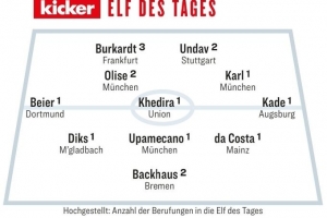 后卫:迪克斯(门兴)、于帕梅卡诺(拜仁)、达科斯塔(美因茨)