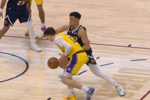 GIF-拉拉维亚上篮球出界 掘金挑战成功夺回球权
