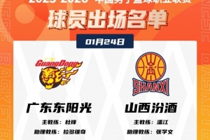 体育资讯1月24日讯 今晚19:35,广东主场迎战山西,赛前大名单出炉。