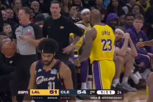 GIF-詹姆斯进攻犯规,湖人挑战失败