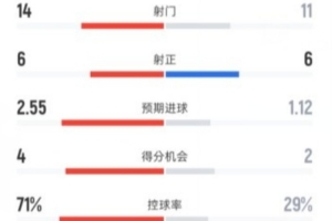 下一篇: 切尔西3-2西汉姆联全场数据:射门14-11,射正6-6,控球率71%-29%