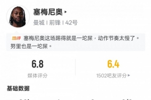 体育资讯2月2日讯 英超第24轮焦点战,曼城客场2-2热刺。塞梅尼奥首发出战,打进1粒进球,6次过人0成功,18次丢失球权全场最多,评分6.8。