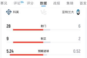 体育资讯02月02日讯 意甲第23轮,科莫主场0-0战平亚特兰大,本场比赛科莫预期进球高达5.24,而亚特兰大的预期进球为0.52。