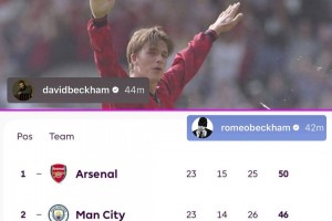 下一篇: 小贝向他阿森纳球迷儿子罗密欧喊话,后者回复了一张积分榜照片